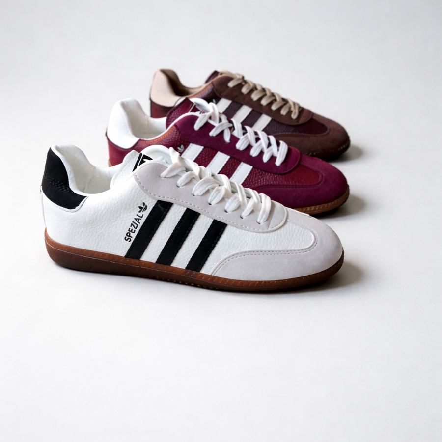 لو بتدوري على كوتشي يجمع بين الراحة والشياكة 👟✨، يبقى حذاء Adidas Spezial الأبيض الحريمي هو اختيارك المثالي. تصميم كلاسيك أنيق بخطوط سوداء مميزة، مناسب لكل الإطلالات اليومية سواء كاجوال أو سبور شيك. الحذاء مصنوع من خامة عالية الجودة بتديكي راحة طوال اليوم، مع نعل مطاطي ثابت يمنع الانزلاق ويوفر ثبات أثناء المشي 👌