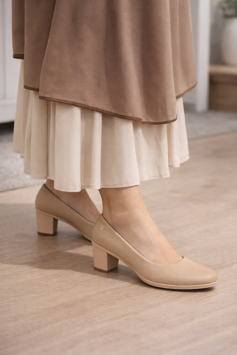 ✔ لون بيج راقي سهل التنسيق مع أي فستان أو عباية