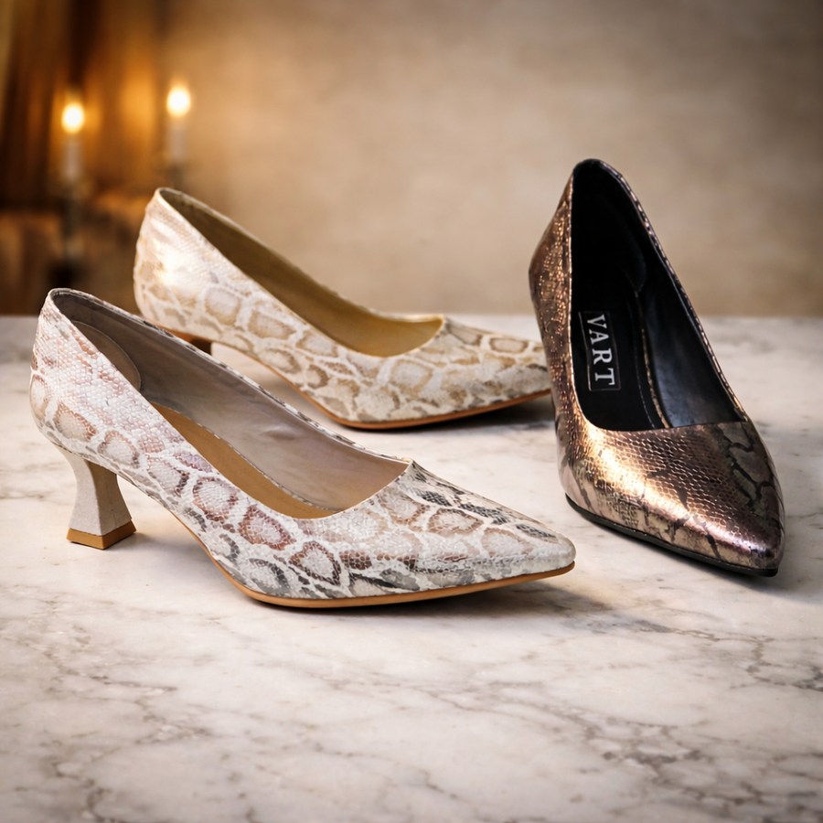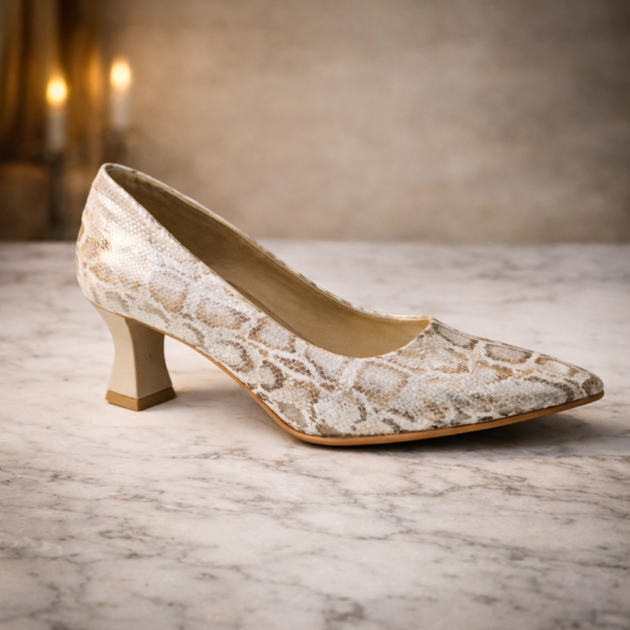 مع حذاء نسائي كلاسيك سوارية بكعب متوسط 3 سم، المصمم بعناية ليجمع بين الراحة والأناقة في نفس الوقت. يتميز الحذاء بتصميمه العصري بنقشة جلد الثعبان الجذابة، مع مقدمة مدببة تضيف لمسة راقية تناسب جميع الإطلالات.