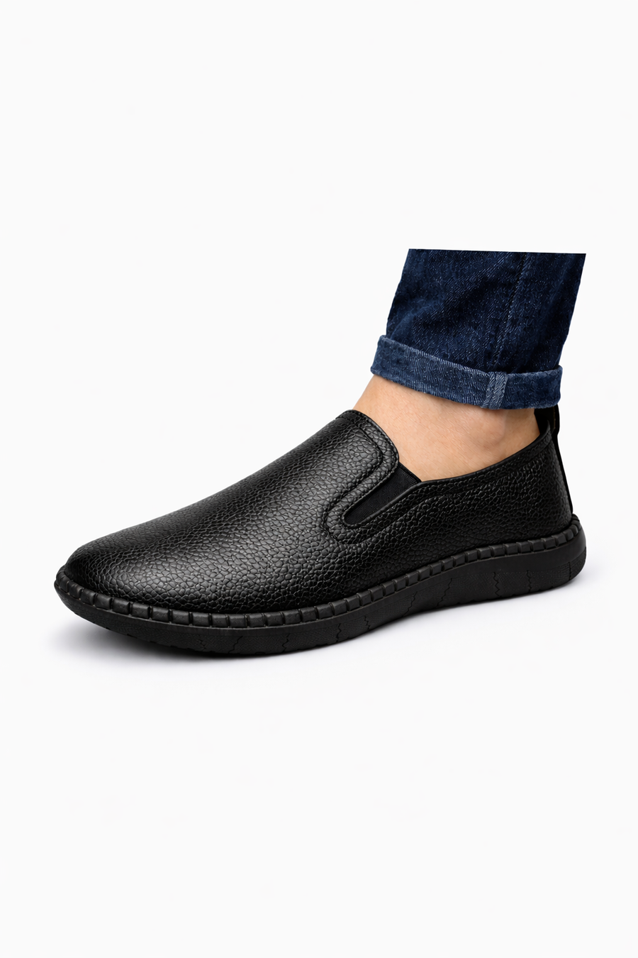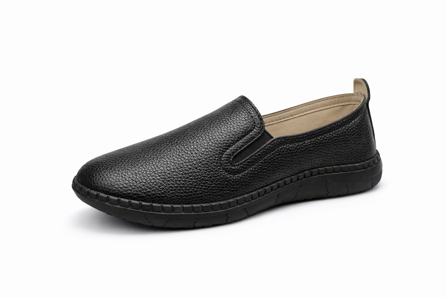 حذاء حريمي أسود سليب أون مريح، مثالي للمشي اليومي والإطلالات الكاجوال. يتميز بنعل ناعم وتصميم خفيف الوزن ومظهر أنيق يوفر راحة طوال اليوم.