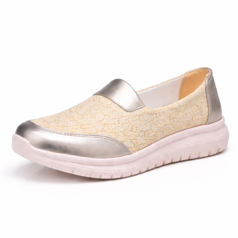 حذاء كوتشي نسائي بنعل طبي مريح بتصميم عصري مطعم باللون الفضي. خفيف ومناسب للمشي والاستخدام اليومي. تسوقي الآن بأفضل سعر من VART.