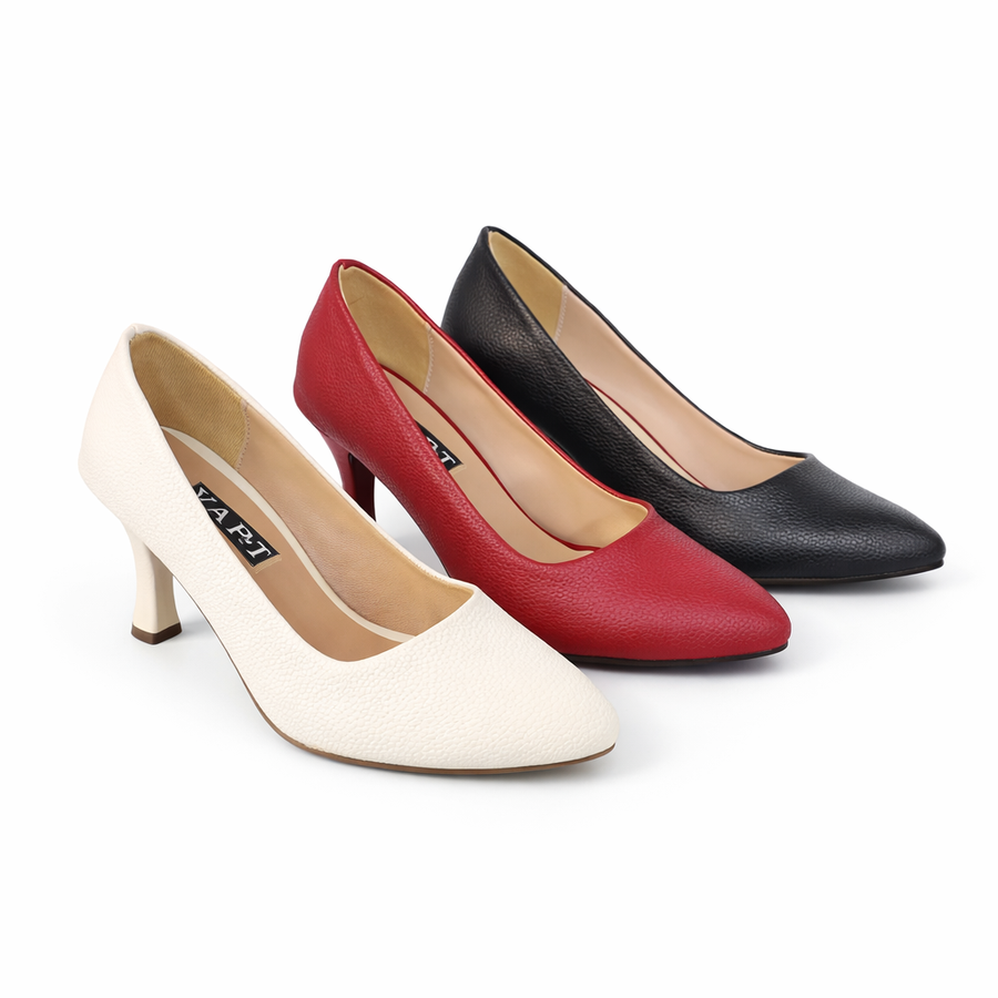 اشتري حذاء كعب حريمي أنيق بتصميم كلاسيك وكعب مريح. متوفر باللون الأسود والأحمر والأوف وايت مع خصم 20% لفترة محدودة.